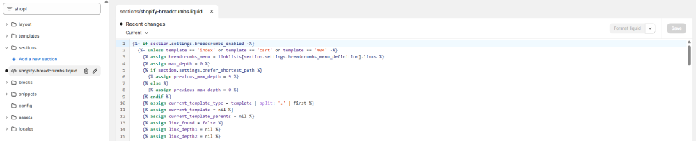 Shopify breadcrumbs code