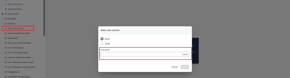 Give your new Liquid file a name — for example, shopify-breadcrumbs.liquid. You can use any name you prefer.